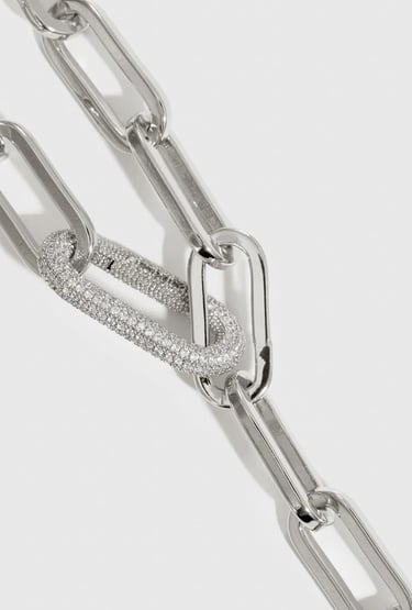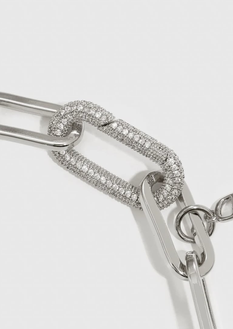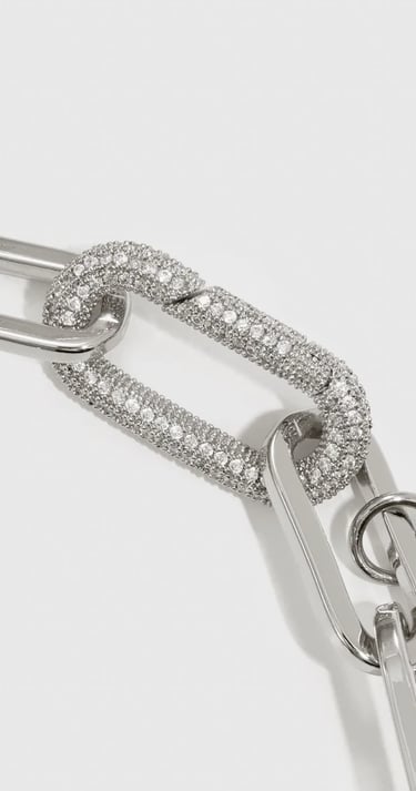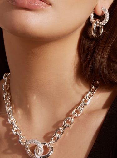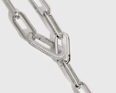 24" long with a gorgeous and modern pave crystal clasp. Plated with a thick layer of sterling silver and an e-coating top layer for long lasting lustre and durability.
